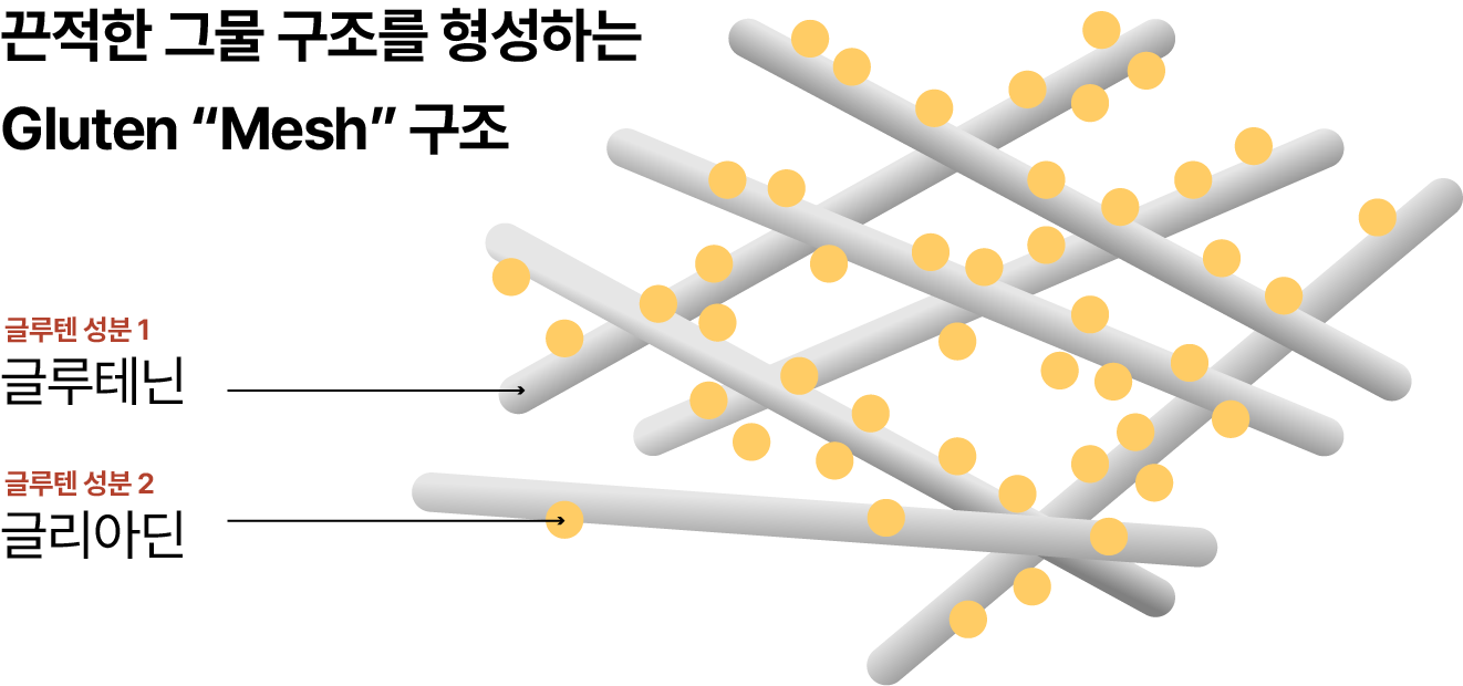 글루텐은 밀, 보리, 호밀 등 일부 곡물에서 발견된 불용성 단백질로, 물을 잘 흡수하는 특성을 가지고 있으며 물과 만나면 끈적한 그물 구조를 형성합니다. 이 구조는 소화효소가 쉽게 작용하지 못하게 해 위에서 완전히 분해되지 않고 대장까지 도달할 수 있습니다.